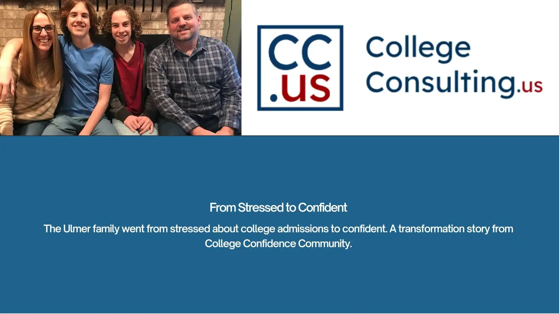 Are you interested in the same flip from stressed to confident? If so, after checking out the free College Confidence Community, schedule a free 45-minute call with me so we can hash out your admissions hurdles. If the call goes well, and you seem like a fit for the program, we can discuss that possibility too.