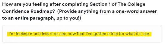 But since our community wasn’t a thing then, they started right in on our aforementioned College Confidence Roadmap.