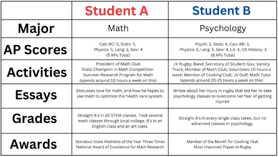 If you’re reading, do a quick 60 second thought experiment with me. Imagine you’re the admissions officer who gets to decide which student, out of the two below, to admit. The student you pick will represent your college, so choose wisely.