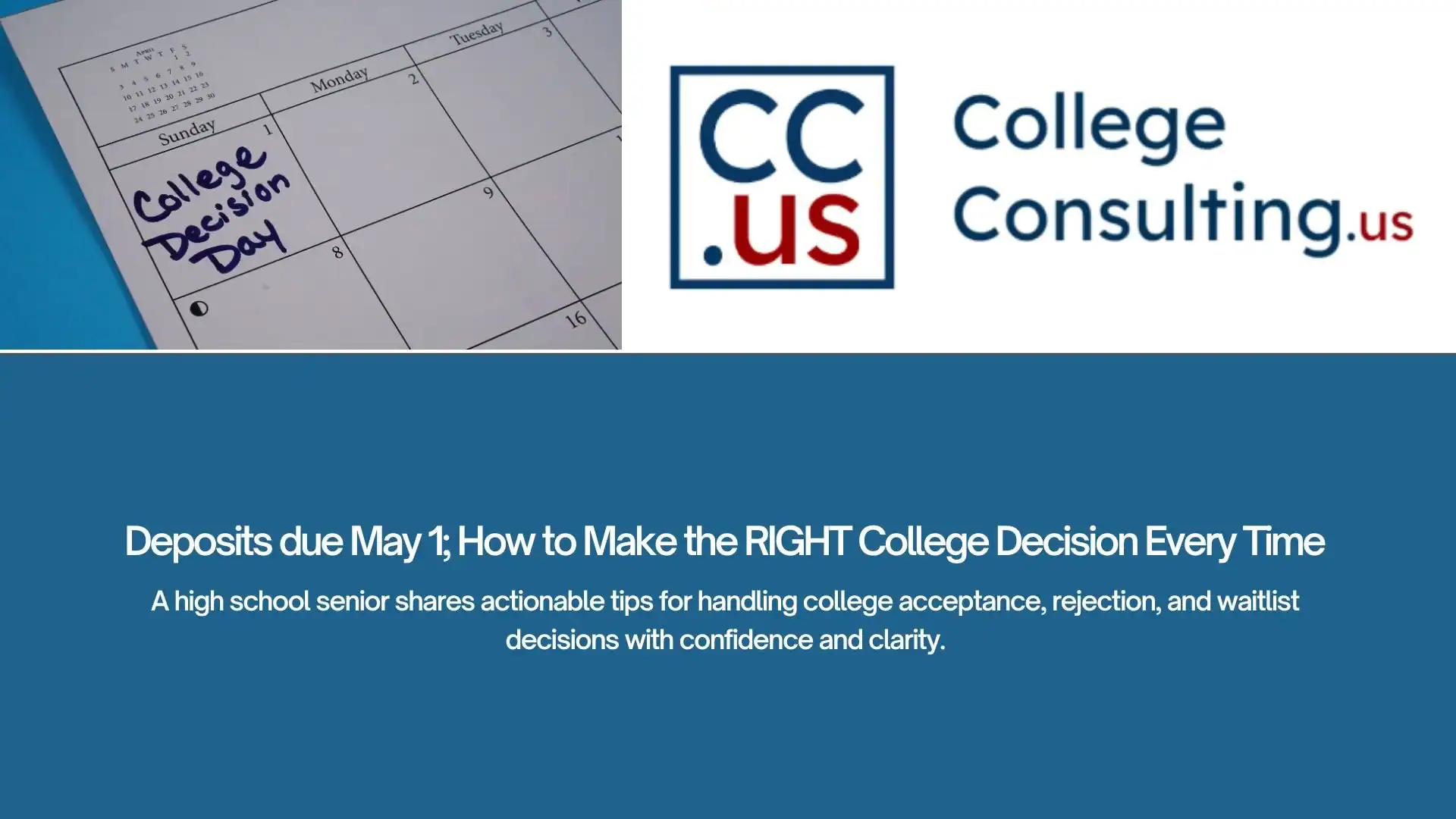 And although these tips are aimed at seniors, they don’t just apply to those receiving decisions; they apply to everyone as they represent the ideology of college admissions we preach at CollegeConsulting.us. Plus, one day your family will be in this boat as well.