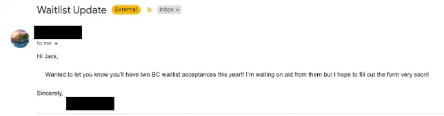 I might be a little biased, since I went to my dream school because I got off a waitlist, but I love hearing stories like this. It reminds me of the importance of the tips we give for getting admitted from waitlists. Contrary to popular belief, the waitlist is not just for waiting, but we can save that conversation for the next admissions cycle.