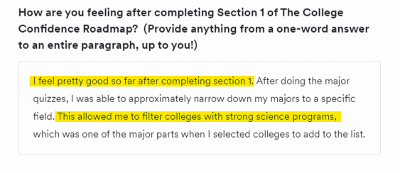 Again, congrats to Ethan (and Behram). If you’re interested in similar support to conquer admissions, check out the free College Confidence Community or schedule a free 45-minute call with me so we can hash out your admissions hurdles. If the call goes well, and you seem like a fit for the program, we can discuss that possibility too.