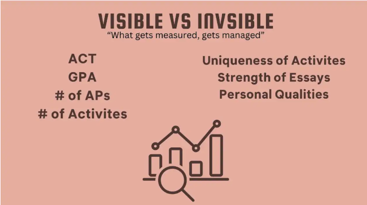 Now, let’s apply this idea of visible and invisible metrics to college admissions.